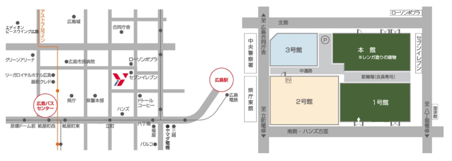 - JR広島駅より徒歩20分、市内電車(5番以外)「立町」電停下車徒歩3分
