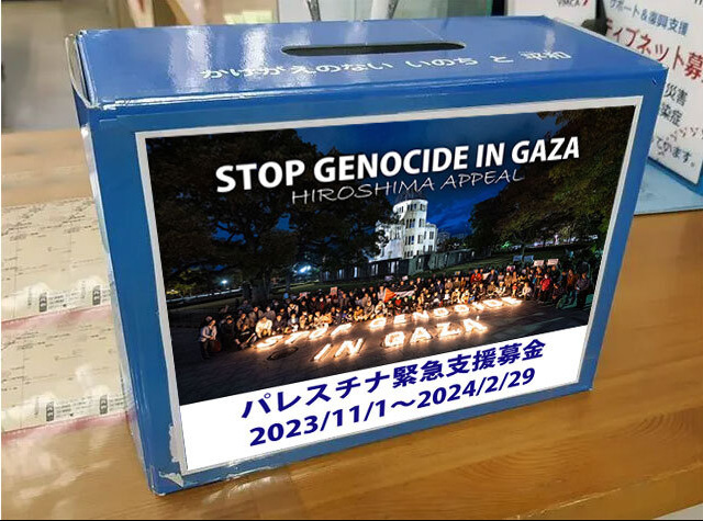 広島YMCA各部受付窓口に「パレスチナ緊急支援募金箱」を設置いたしまそ。直接そちらにお持ちください。