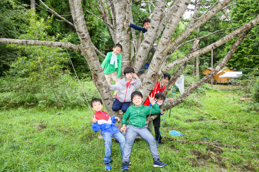 幼児・小学生を対象に、年間を通じて様々なアウトドアプログラム(野外活動)を実施しており、自然体験、グループワーク、環境教育などを通じて子どもたちの心と体を豊かに育みます。(夏休みや冬休みに実施するシーズンキャンプでは、中学生もご参加いただけます。)