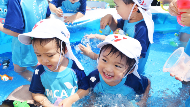 広島YMCAウエルネススポーツセンター(WAAP)の本格的なスイミングプールで、のびのびと楽しく水あそびにチャレンジします。子どもたちは、あそびの中から自然に水であそぶことの楽しさを覚えることができます。