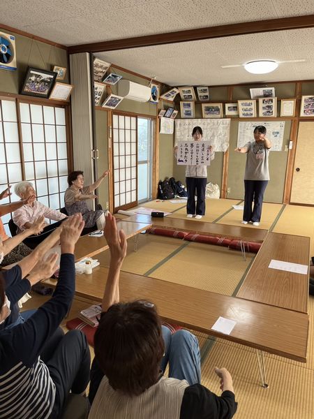学生は、米子市福祉協議会のご協力のもと、崎津地区の「いきいきサロンさざんかの会」と、永江地区の「百の会」の2か所に分かれて活動しました。