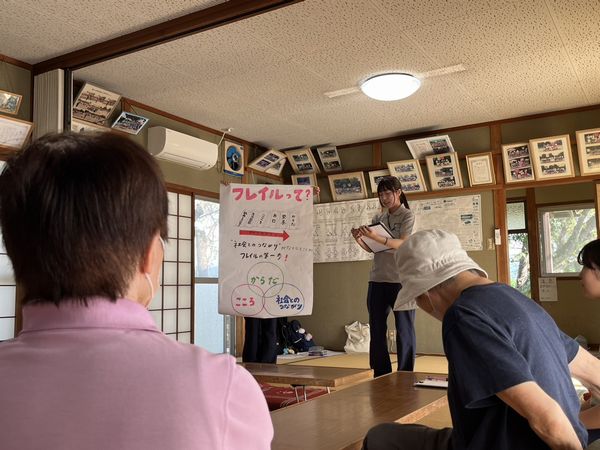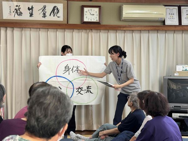 事前に「フレイル」について、フレイルになる原因や対策などについて学び、どんなレクリエーションであれば地域の方に楽しんで参加していただけるかをグループで話し合い、何度も練習を重ねて当日を迎えました。