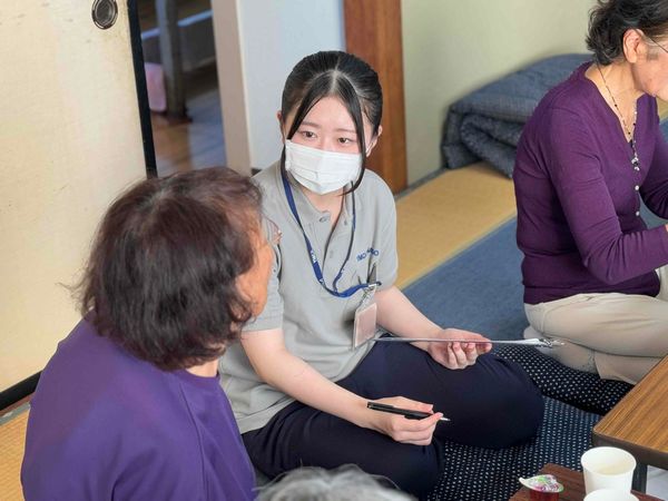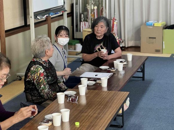 レクリエーションの後には、参加された皆さんとお話する時間を設けていただき、サロンでの取り組みや普段の生活のご様子、困りごとなど色々なお話を聞かせていただきました。