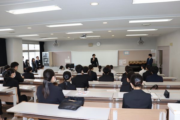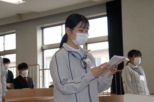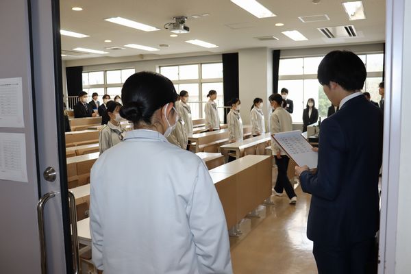 田住科長の式辞の後、在校生代表の4年生からは「体調に気を付け、実習指導者の先生に相談しながら色々と学んできてください」と激励の言葉をいただきました。