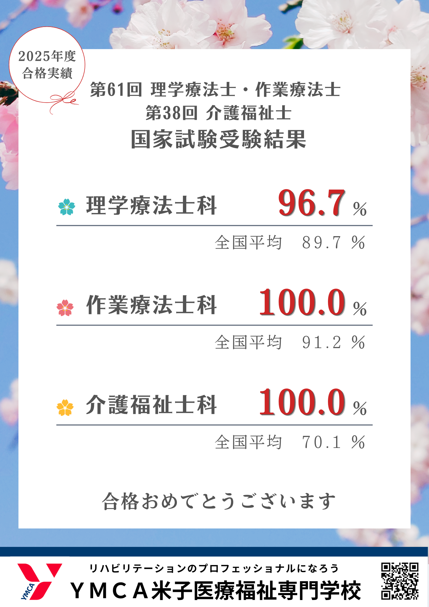 第61回理学療法士・作業療法士国家試験、第38回介護福祉士国家試験の結果をご報告いたします。