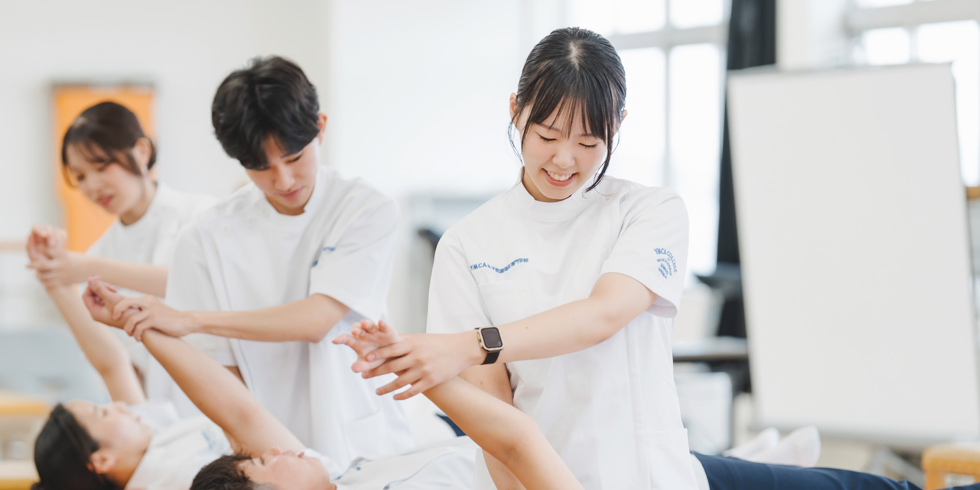 身体に障がいを持った人々に、寝返り、起き上がり、立ち上がりや歩行などの基本動作能力の回復や維持、能力低下の予防を目的として、リハビリを行う国家資格者です。単に機能や能力を回復すれば良いのではなく、対象者がどのような社会生活を送りたいのかを見据えたプランを立てなければなりません。YMCAでは高い技術はもちろん、たくさんの実践を積み重ね、一対一でじっくりと向き合うことのできる理学療法士を育成します。
